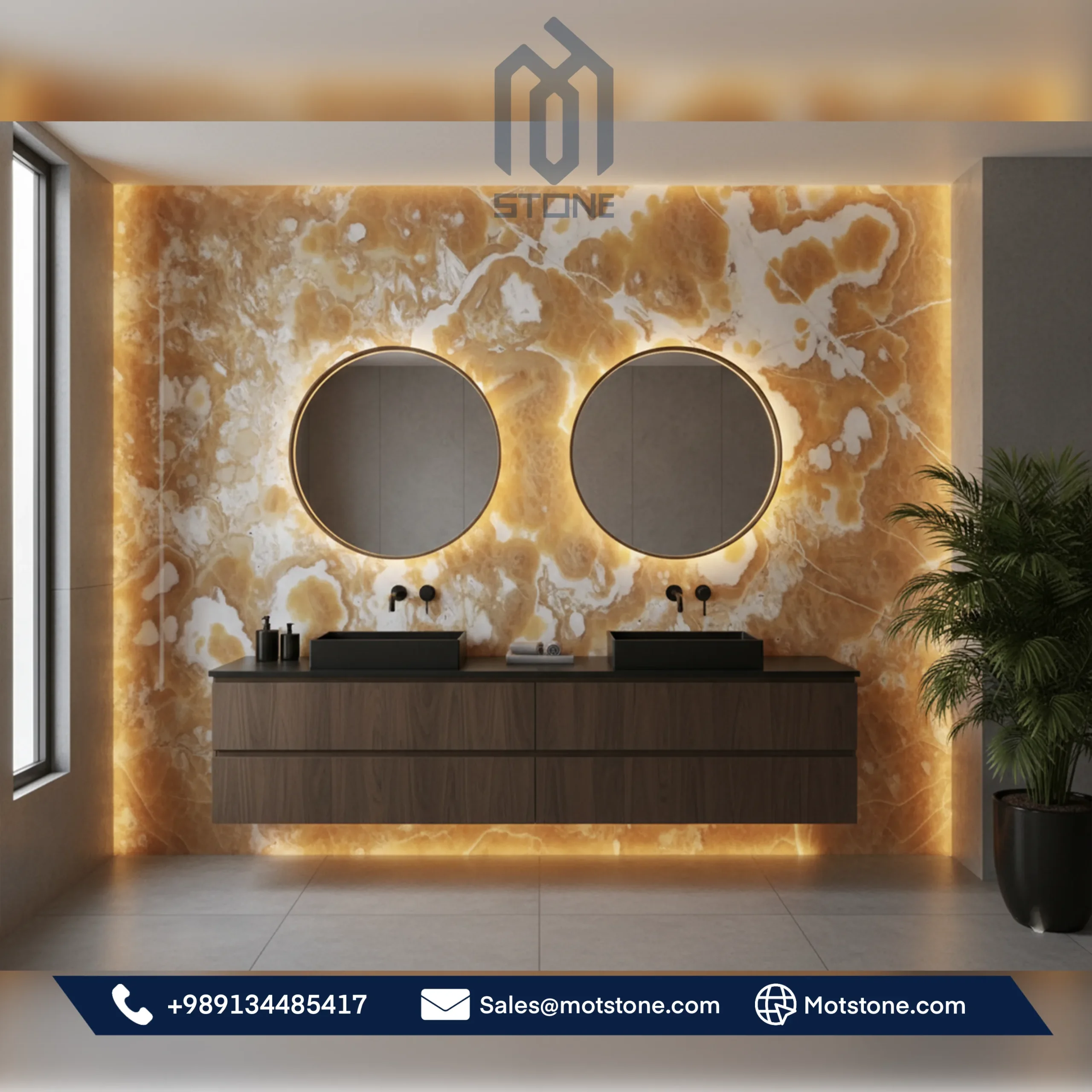 - Orange Onyx tiles for bathroom walls, hotel lobbies, and high-end living spaces