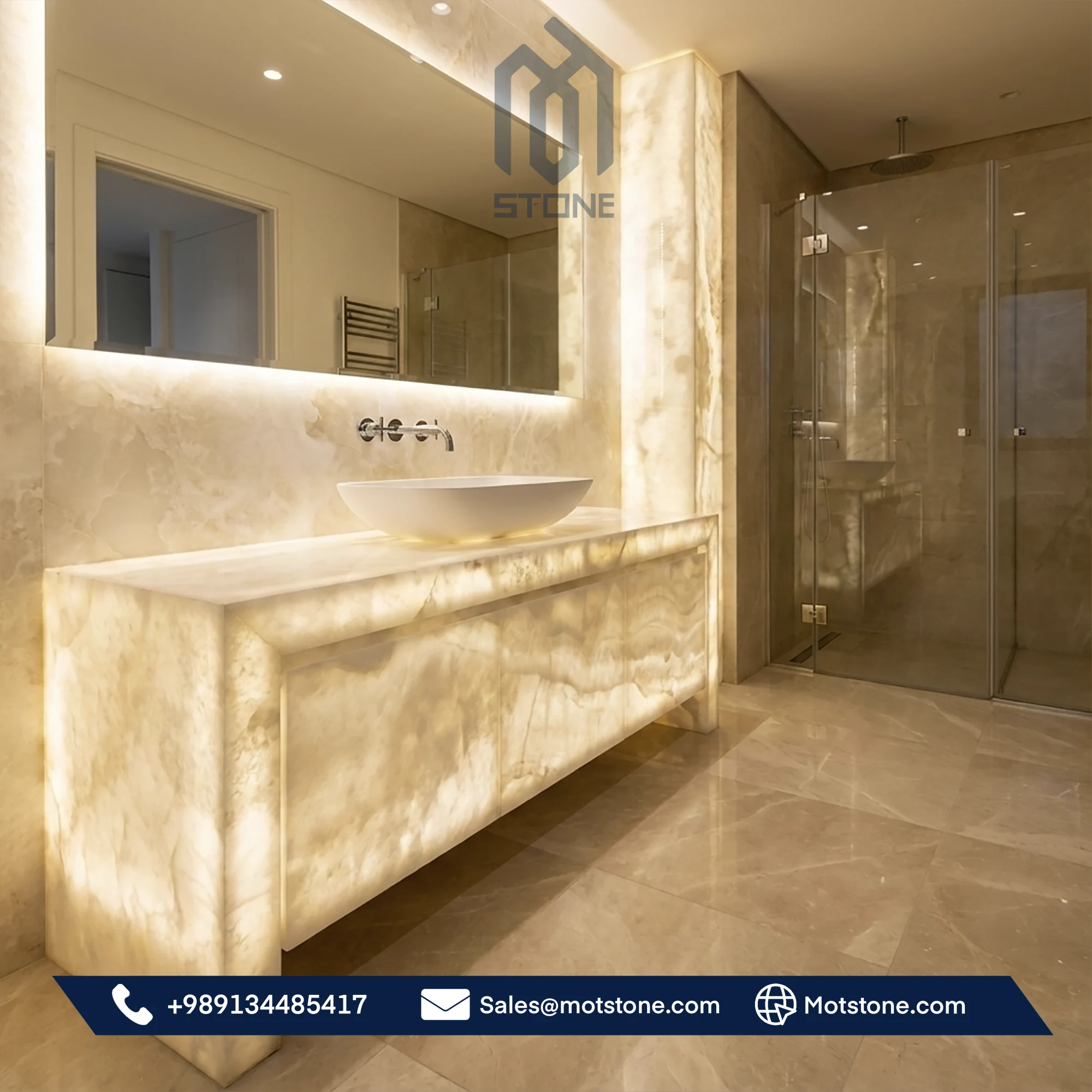 At Motstone, we operate as a professional White Onyx supplier and wholesale exporter, providing high-quality White Onyx slabs and tiles to international distributors, contractors, and project developers worldwide.