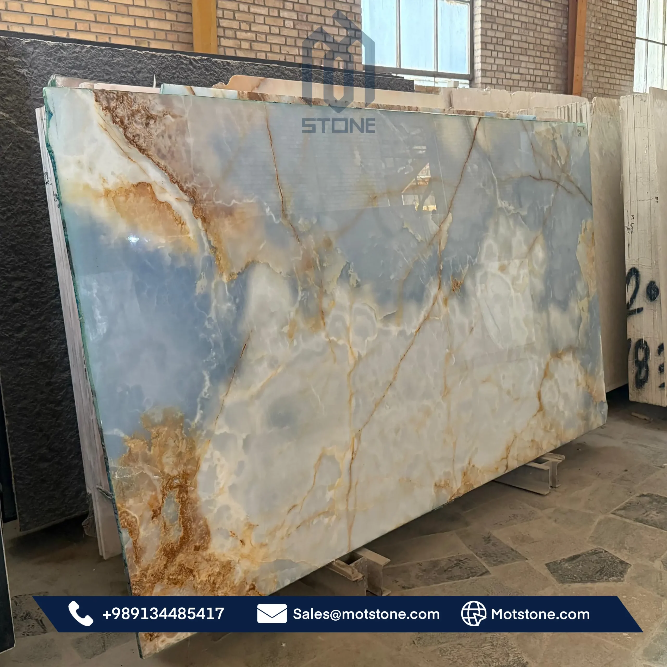 Голубой оникс от MOTstone — это сочетание природной красоты, технологического совершенства и надёжного партнёрства, созданное для тех, кто ценит качество и эксклюзивность.